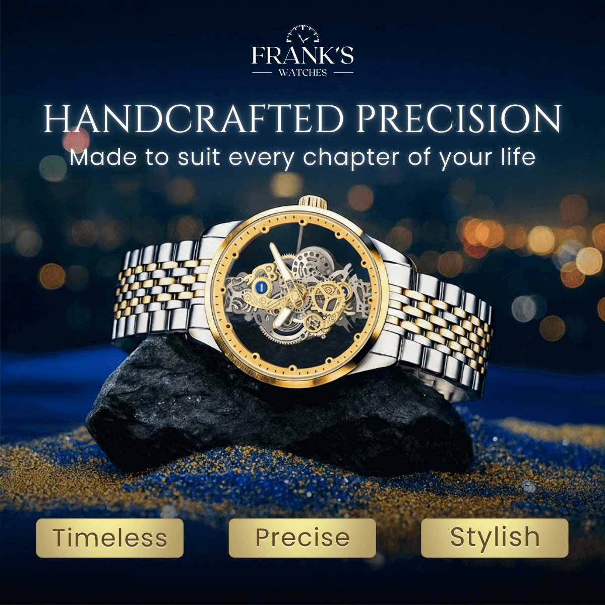 My name is Frank, and for more than 45 years I have been making watches by hand in my small boutique. This craft has been my life’s work, and every watch I build carries a piece of my heart.