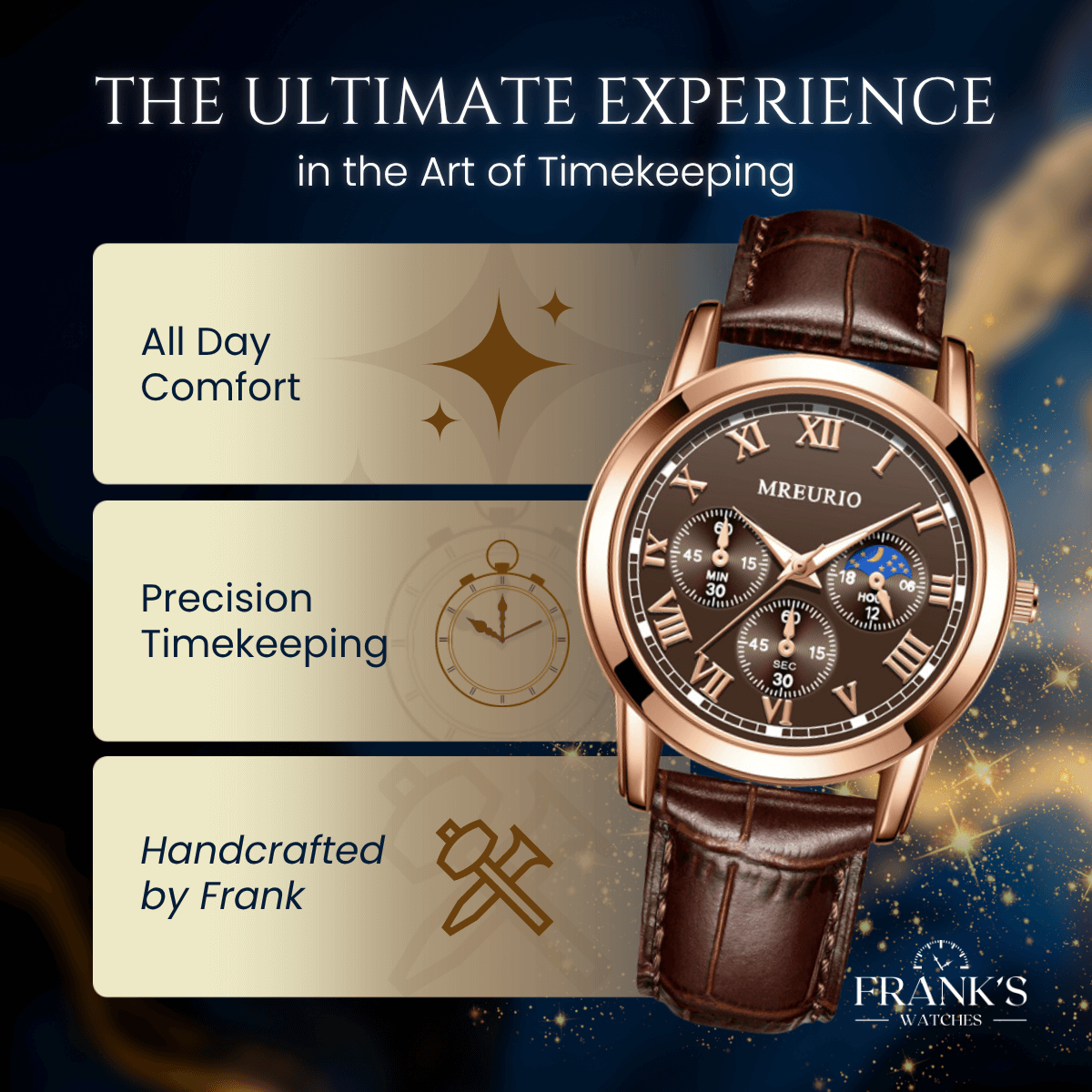 My name is Frank, and for more than 45 years I have been making watches by hand in my small boutique. This craft has been my life’s work, and every watch I build carries a piece of my heart.