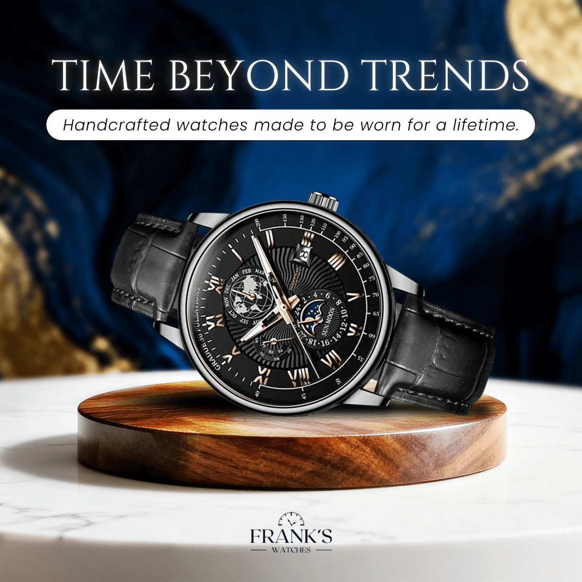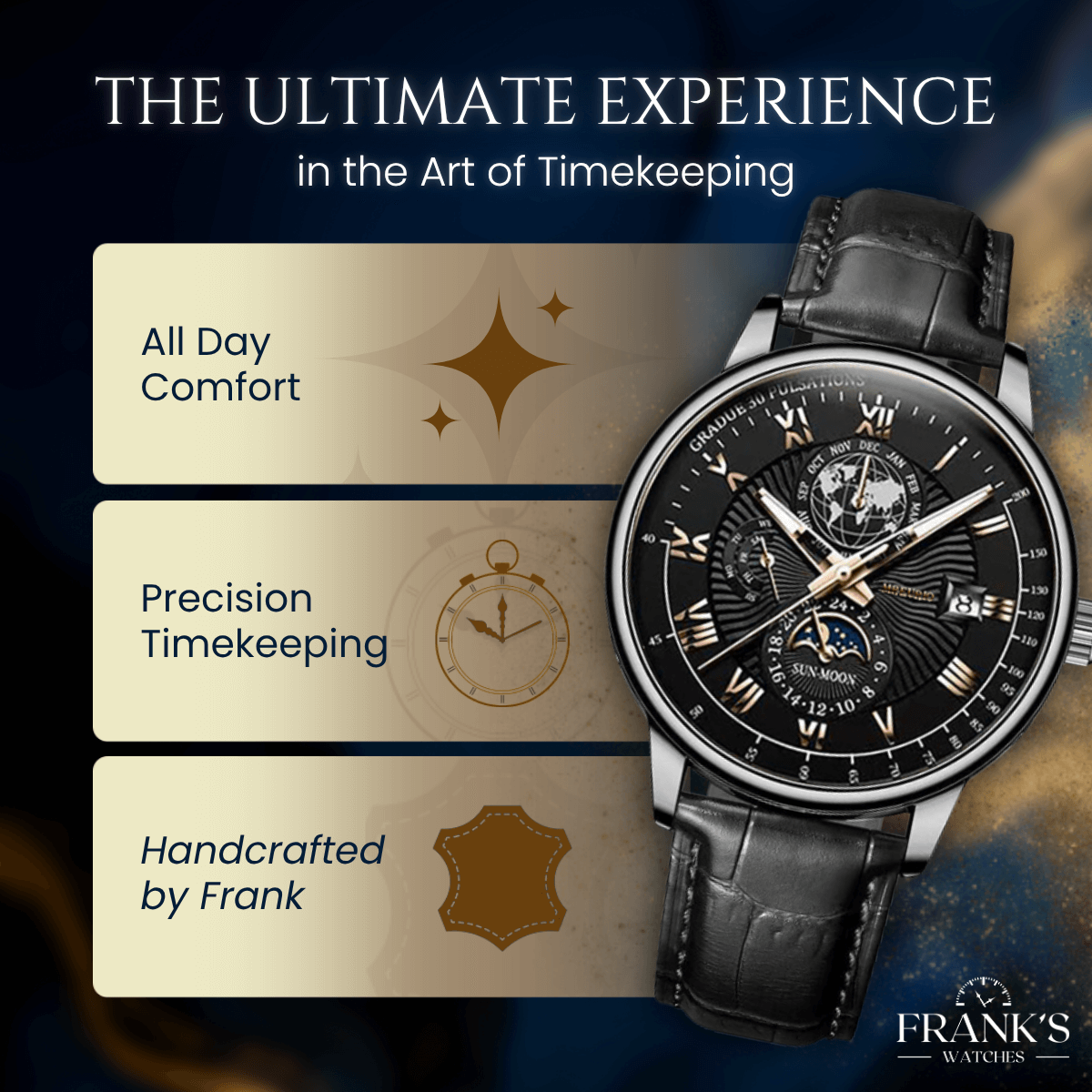 My name is Frank, and for more than 45 years I have been making watches by hand in my small boutique. This craft has been my life’s work, and every watch I build carries a piece of my heart.
