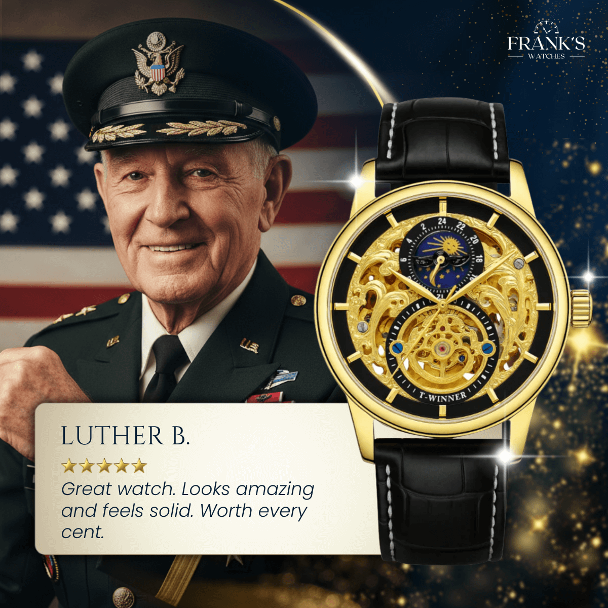My name is Frank, and for more than 45 years I have been making watches by hand in my small boutique. This craft has been my life’s work, and every watch I build carries a piece of my heart.