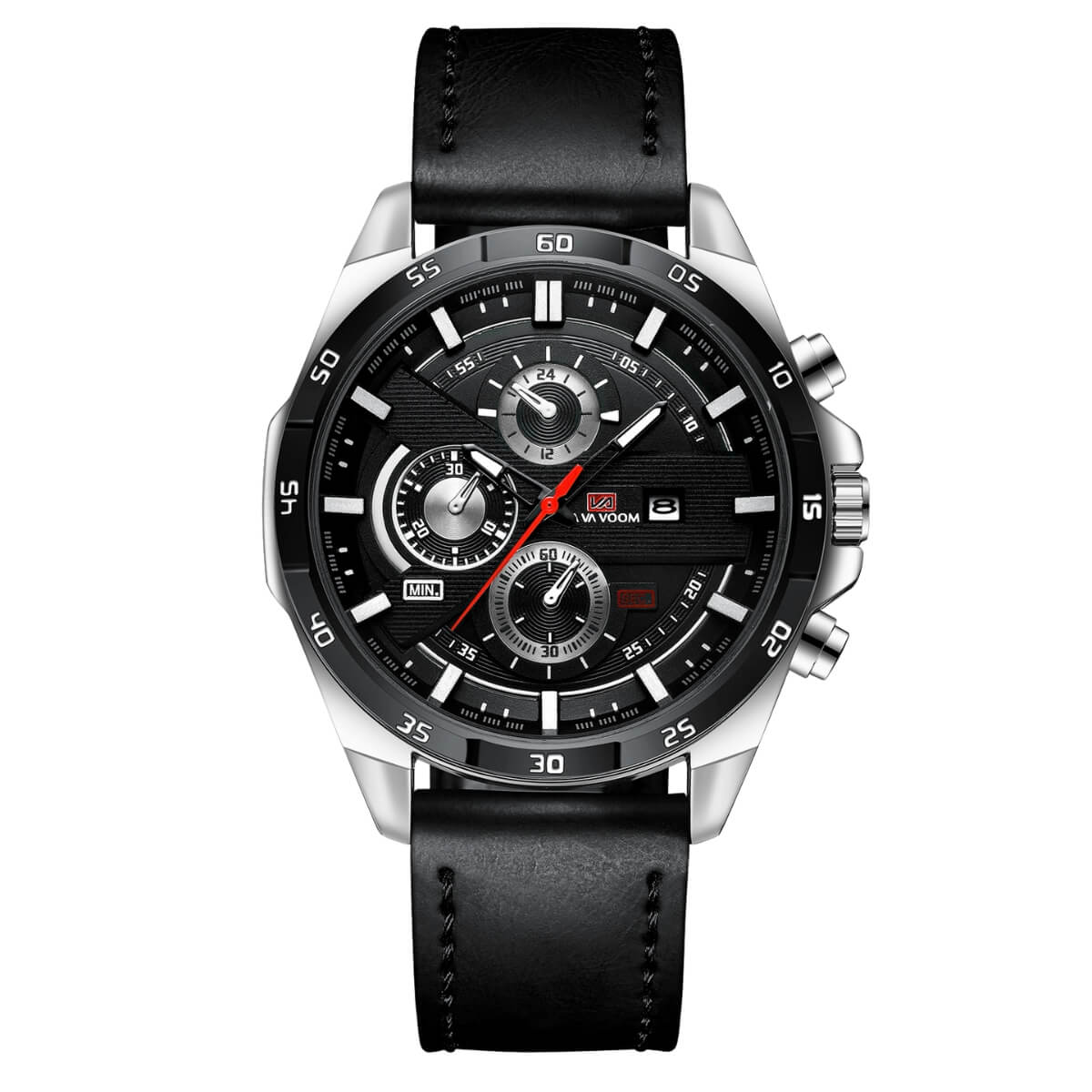 Ideal for both professional and casual occasions, the Lennard stands out with its textured dial, luminous accents, and responsive sub-dials. The quartz movement ensures reliable timekeeping, while the mineral reinforced glass mirror and metal case enhance durability. Paired with a comfortable microfiber strap, it offers a confident presence whether in meetings, events, or daily activities.