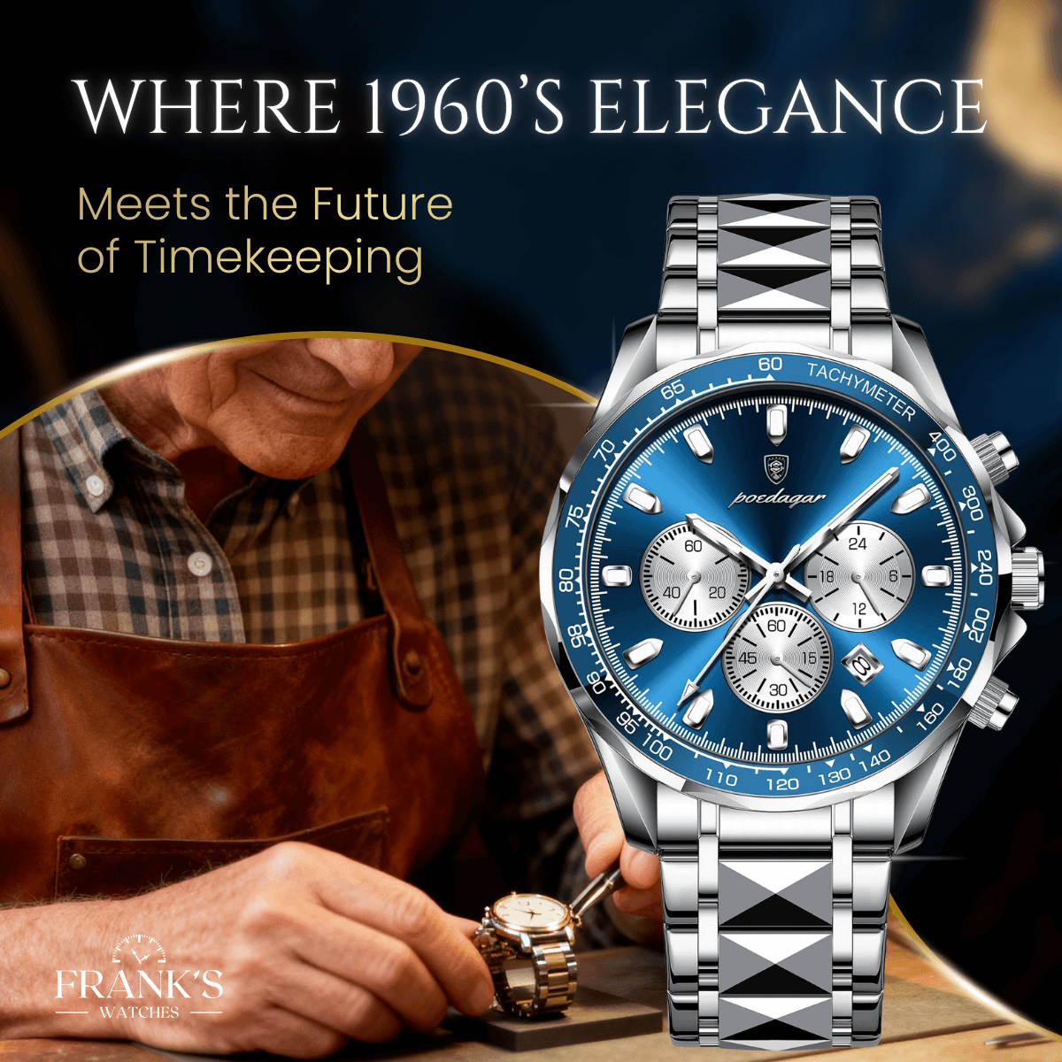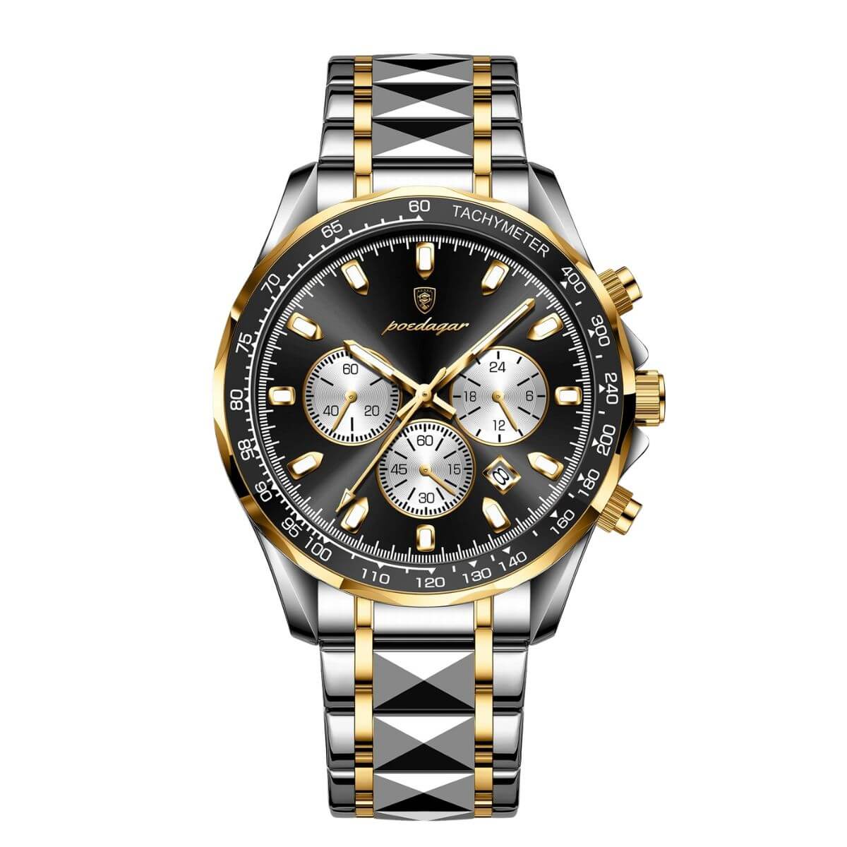 The Preston Luxury Business Quartz Chronograph Wristwatch | 44.5mm brings together refined design and precise functionality. Featuring a solid stainless steel build, three sub-dials, and a tachymeter bezel, it offers the precision of a sport chronograph with the clean, confident style of a luxury timepiece. Its durable materials and detailed craftsmanship make it a dependable companion for work, travel, or leisure.
