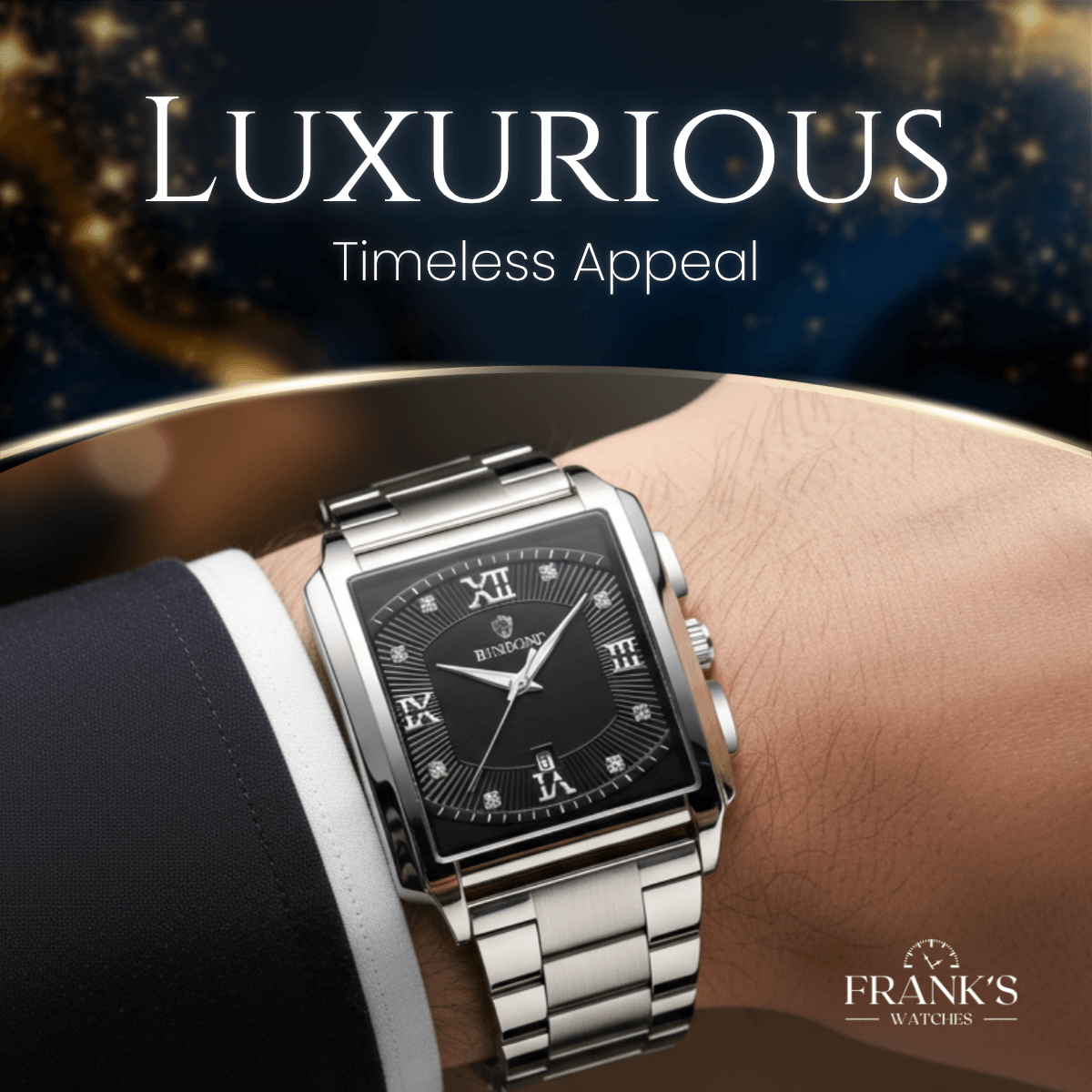 The Milton | Men’s Rectangular Stainless Steel Quartz Watch | 44mm blends sharp geometry with timeless sophistication. Its rectangular case design and Roman numeral dial give it a distinctive, confident look. Crafted with a polished steel strap and high-durability mirror, it offers lasting comfort and clarity. Built for men who appreciate refined simplicity and reliable function, this watch represents a balance of elegance and strength.