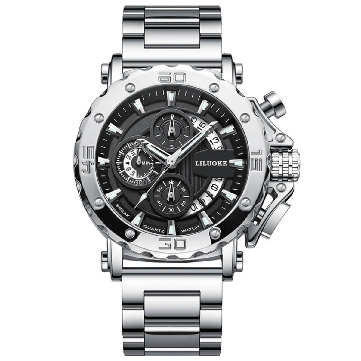 The Harriman | Men’s Heavy-Duty Multifunction Chronograph Watch | 45mm is engineered for men who demand power, accuracy, and presence. With its rugged design, solid stainless steel case, and detailed chronograph layout, this watch combines technical precision with an industrial aesthetic. Every feature, from its reinforced bezel to its luminous markers, is built for reliability and style in equal measure.