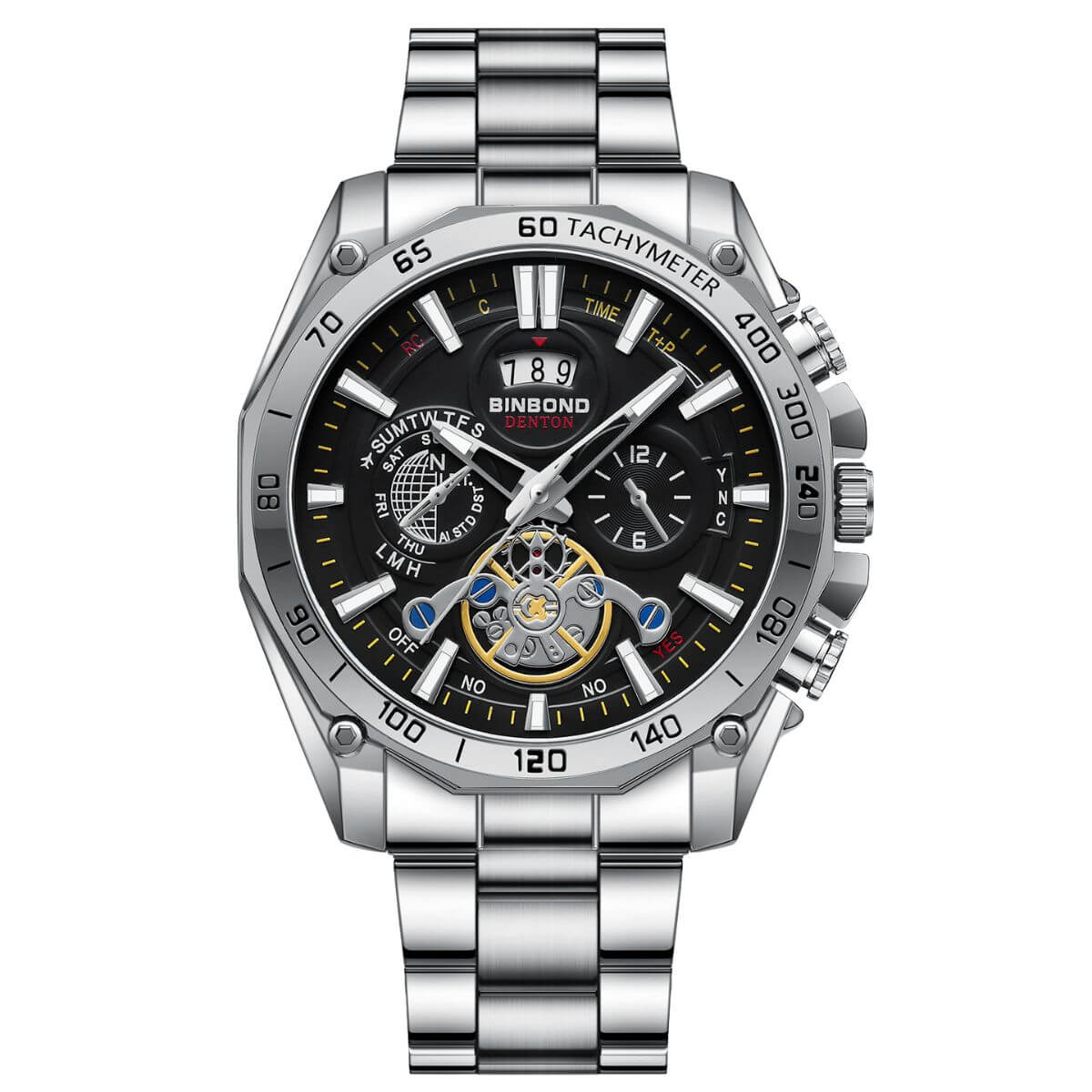 Designed to adapt from business meetings to outdoor adventures, the Mason stands out as a versatile essential. Its structured case and balanced sub-dials deliver functionality without clutter, making it equally fitting for formal wear and active lifestyles. The solid steel strap ensures long-lasting comfort and security, giving the watch a presence that feels as strong as it looks.
