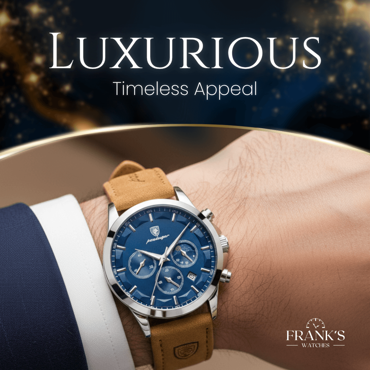 This watch transitions effortlessly between office wear and casual settings. Its leather band provides lasting comfort, while the subtle moon phase window and calendar function make it an elegant yet functional choice for any occasion.