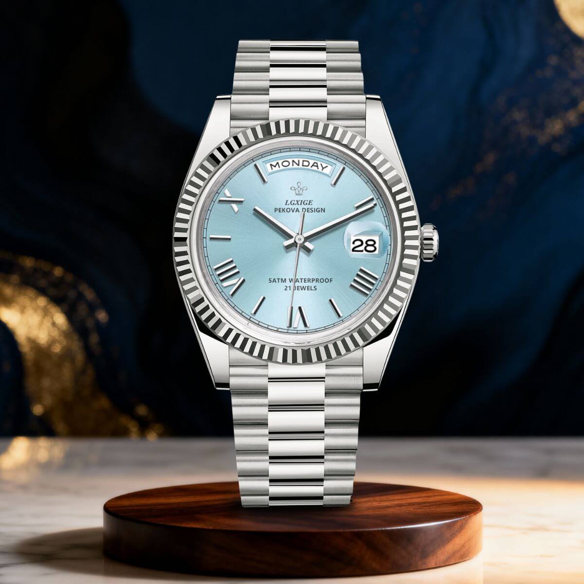 Whether worn at work, formal events, or casual outings, the Charleston enhances any look effortlessly. Its minimalist Roman numeral hour markers and magnified date display offer both style and practicality. Designed for the modern professional, it transitions seamlessly between polished and relaxed settings, making it a dependable accessory for daily wear.