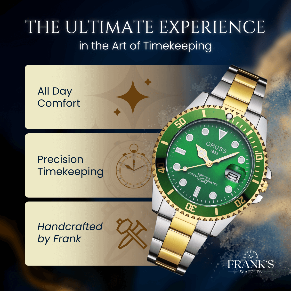 My name is Frank, and for more than 45 years I have been making watches by hand in my small boutique. This craft has been my life’s work, and every watch I build carries a piece of my heart.